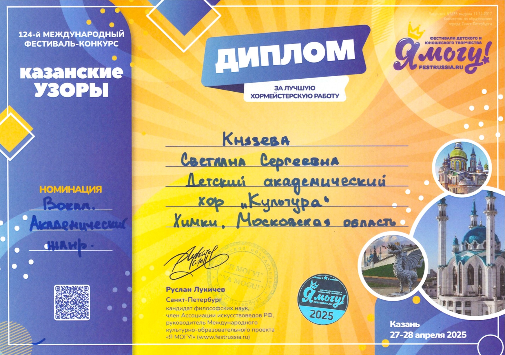 Преподавателю Князевой Светлане Сергеевне был вручён Специальный приз за лучшую хормейстерскую работу!