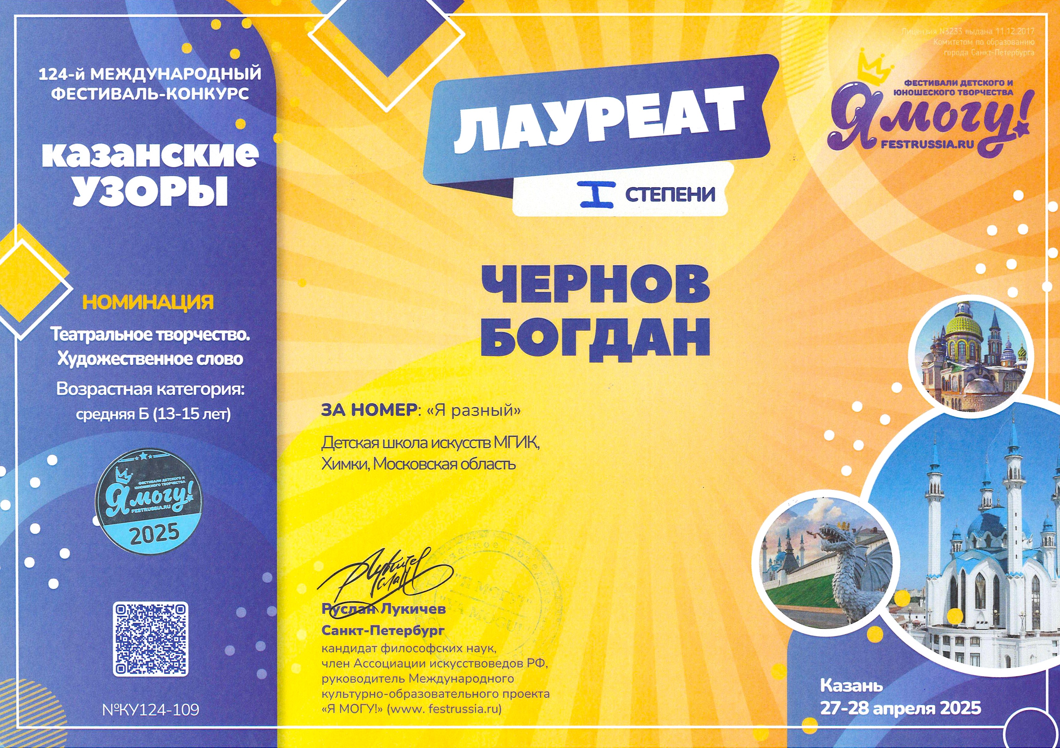Лауреат I степени - Чернов Богдан в номинации "Театральное творчество. Художественное слово".