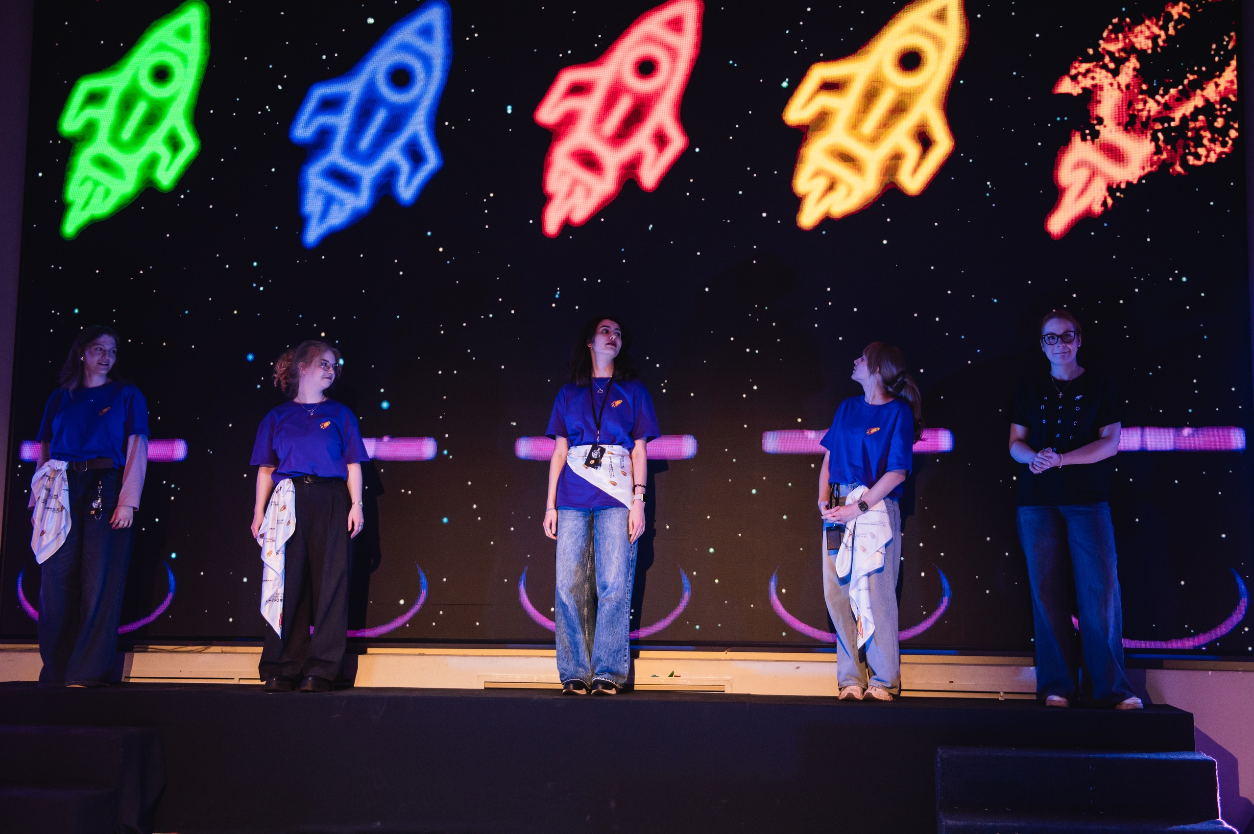 Финал торжественно открылся в стенах МГИК. Обучающиеся театрально-режиссёрского факультета во главе с Владиславом Походяевым и старшим преподавателем кафедры режиссуры театрализованных представлений Викторией Юрьевной Рахлинской подготовили яркое приветствие в космической стилистике. На занавесе звучал сигнал связи «Земля — Космос», проекции на порталах создавали эффект полёта, а на сцене зарождалась новая звезда — символ IX сезона. Ключевым образом постановки стала ракета, олицетворяющая вектор движения к профессиональному успеху.