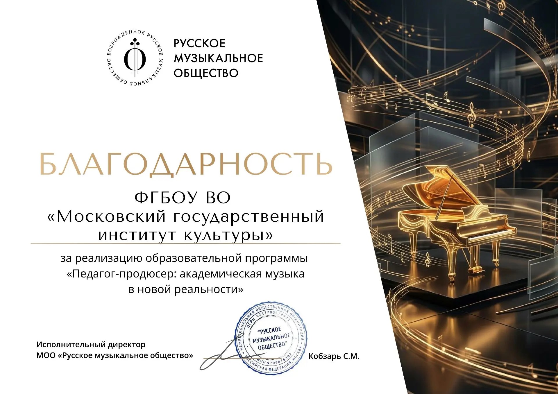 Программа «Педагог-продюсер: Академическая музыка в новой реальности» организована совместно с Русским музыкальным обществом и МГИК. Она направлена на трансформацию профессионального профиля музыкального педагога из традиционного транслятора знаний в современного педагога-продюсера, способного эффективно работать в новых реалиях, понимать психологию современных учеников, внедрять инновационные технологии в академическое музыкальное образование и управлять своей карьерой. В фокусе внимания экспертов программы находились психология, нейрофизиология музыки и способы предотвращения выгорания, а также использование искусственного интеллекта для создания контента и усиления личного бренда.
