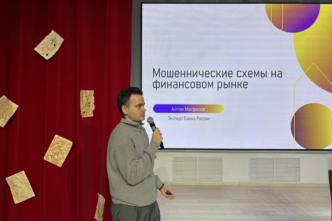 Эксперты Банка России поделились со студентами важными знаниями: начальник отдела мониторинга информационной безопасности Алексей Потехин — о том, как распознавать и избегать кибермошенничества; ведущий эксперт отдела противодействия нелегальной деятельности Антон Матросов — о финансовых пирамидах, их признаках и рисках; начальник отдела финансовой грамотности Ольга Милова — о базовых принципах разумного обращения с деньгами.