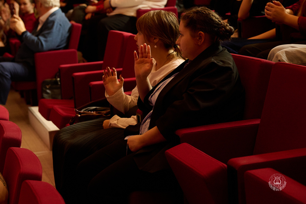 Евгения Осиповна открыла перед студентами и гостями двери своей вокальной мастерской — пространство поиска, эксперимента и освоения певческого искусства. В центре встречи — творческое наследие легендарной Лидии Андреевны Руслановой: участники разбирали особенности её вокального стиля, искали ключи к пониманию подлинного народного пения и учились слушать великих мастеров прошлого — ведь именно в этом, по убеждению Засимовой, рождается настоящее мастерство.